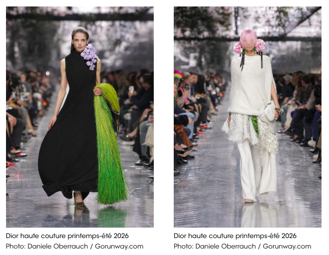 Au moment où je vous écris ces lignes, je découvre le sublime défilé Dior haute couture de Jonathan Anderson : des mannequins qui défilent avec des fleurs sur leurs tenues, qui les portent en boucles d’oreilles, qui les mettent en écharpe… le tout dans une forêt fantastique.
