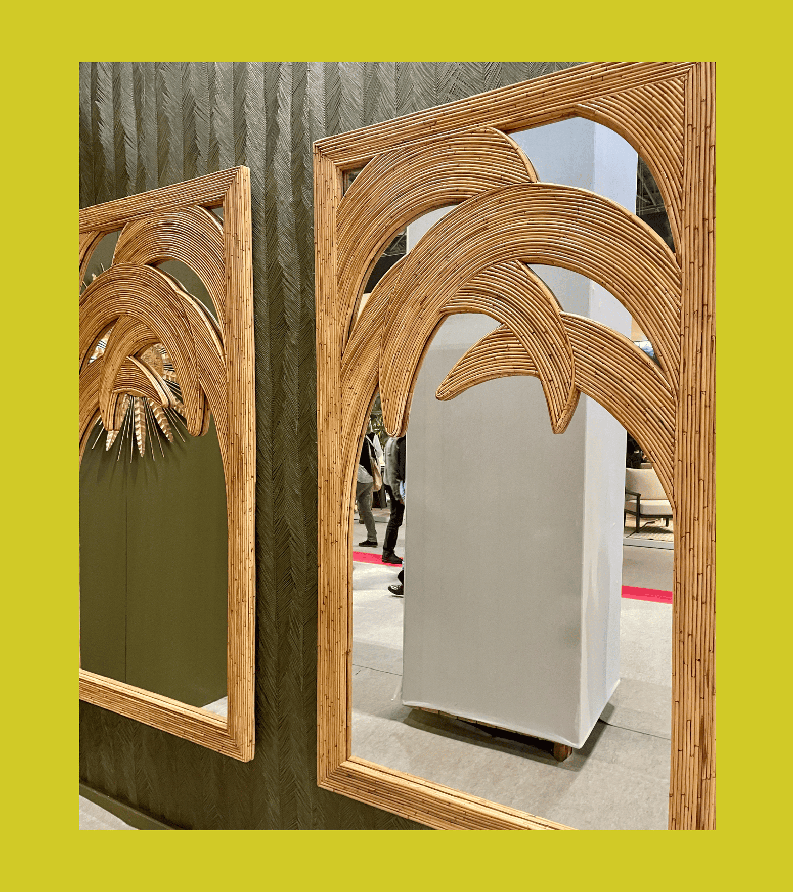Des fleurs monumentales, des faux arbres, des lampes palmiers (Santano), des femmes fleurs… la nature est partout. Et ce n’est sûrement pas nouveau mais sans doute plus théâtralisé. On ne veut plus trois fleurs par-ci par-là, on veut la voir en XXL, on la veut chez nous et sur nous. Comme si on voulait se rappeler (se rassurer) qu’à l’heure du digital, de l’IA, du fake et des écrans interposés, on en fait entièrement partie, de la nature. Il y avait de tout, du très kitsch au plus raffiné. Moi qui adore les fausses fleurs (pas de vraies fleurs dispo en hiver, cf mon numéro Flower Power), j’ai été servie.