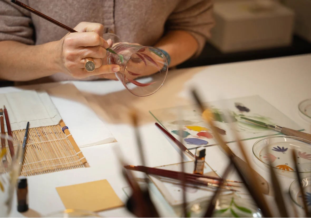 Deux amies d’enfance ont fusionné leurs talents pour créer des verres et des carafes uniques. Inspirées par la Méditerranée et la nature, Clara Riera et Maite López-Fonta peignent à la main feuilles, formes géométriques colorées et fleurs, sur du verre fin et délicat.