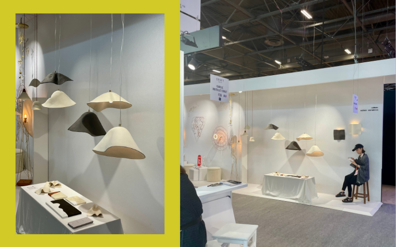 Alors que je courais dans tous les sens sans vraiment savoir où j’allais, je suis passée en slow motion devant ces luminaires flottants d’Eshen Ceramics. Beau ! Made in Taiwan.