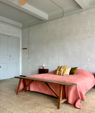 Quand il s’agit d’une maison ancienne, Marine conseille de partir à la recherche des couleurs d’origine : “Quand je suis venue pour la première fois à la Casa Abeille, j’ai sorti mon nuancier et mon couteau pour gratter les murs et retrouver les teintes d’époque. Elles étaient passées, mais c’est justement ce qui faisait la beauté du lieu.” Elle s’en est inspiré pour choisir les couleurs de chaque logement.